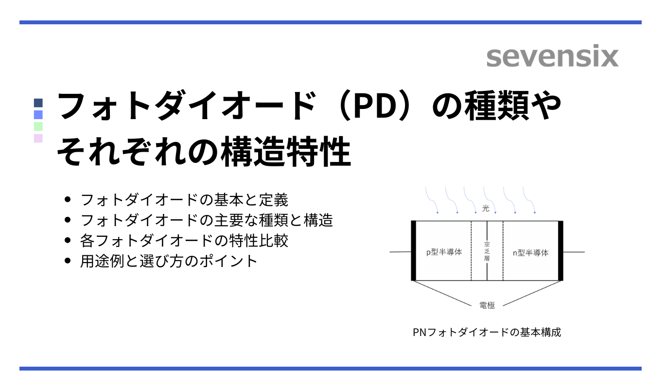 フォトダイオードは、異なる用途や性能要件に応じて、いくつかの種類があります。そのフォトダイオードの種類やそれぞれの構造について解説します。